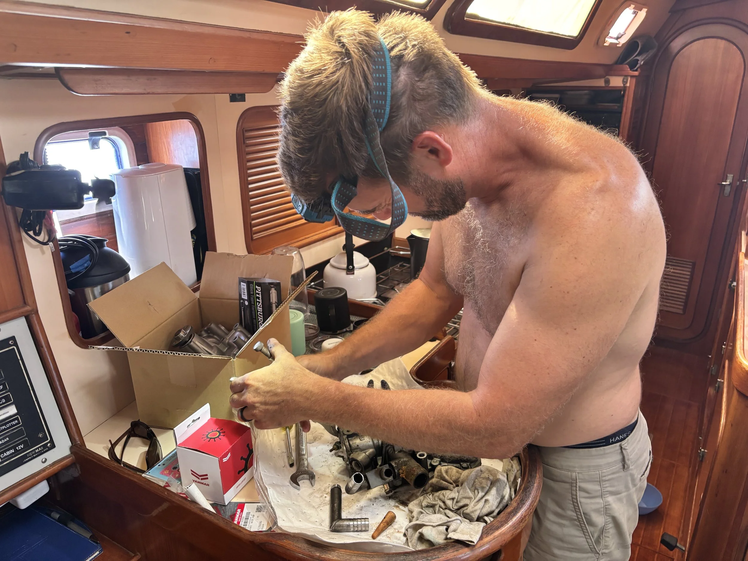 For the next two weeks, we had two sets of friends to enjoy before it was time to make the jump north. Ken used the time to tackle a few more repairs and engine work—boats, after all, are always in some state of decay. As a friend once put it, "If you listen quietly, you can hear something breaking."
