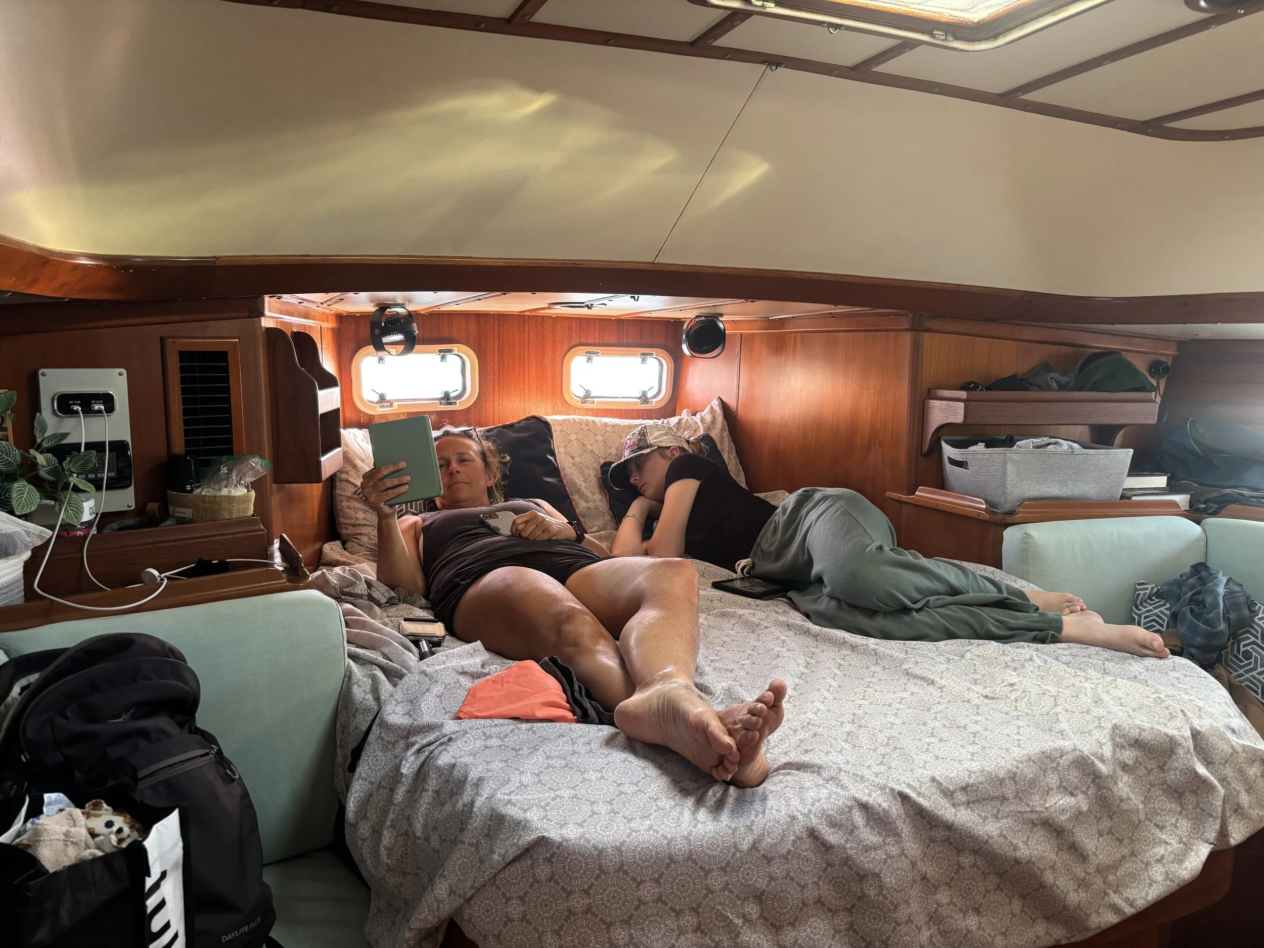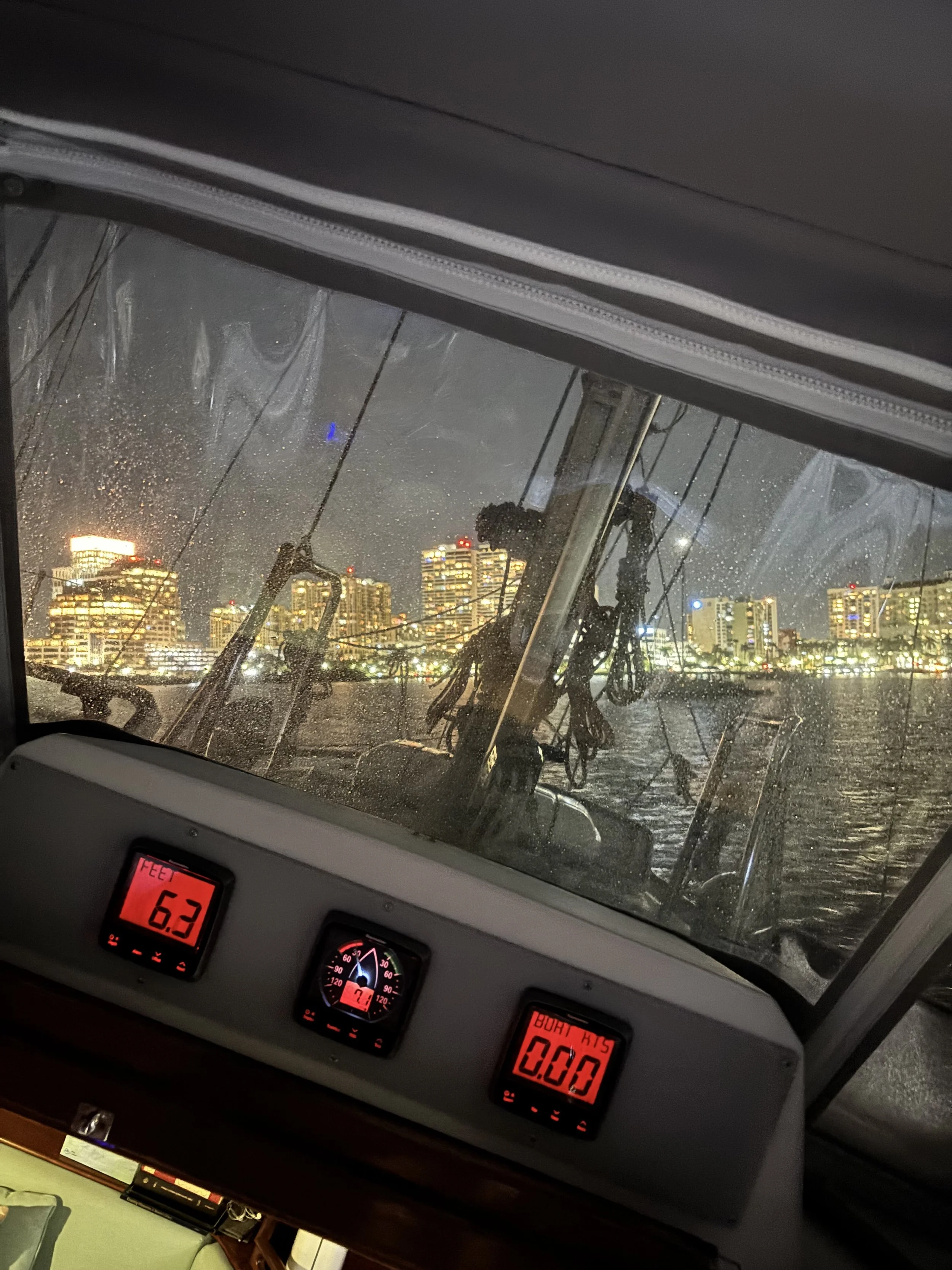 Ken had to fly out for work for a week, which happened to coincide with a strong wind event. I stayed aboard Remedy to keep an eye on things until he returned.