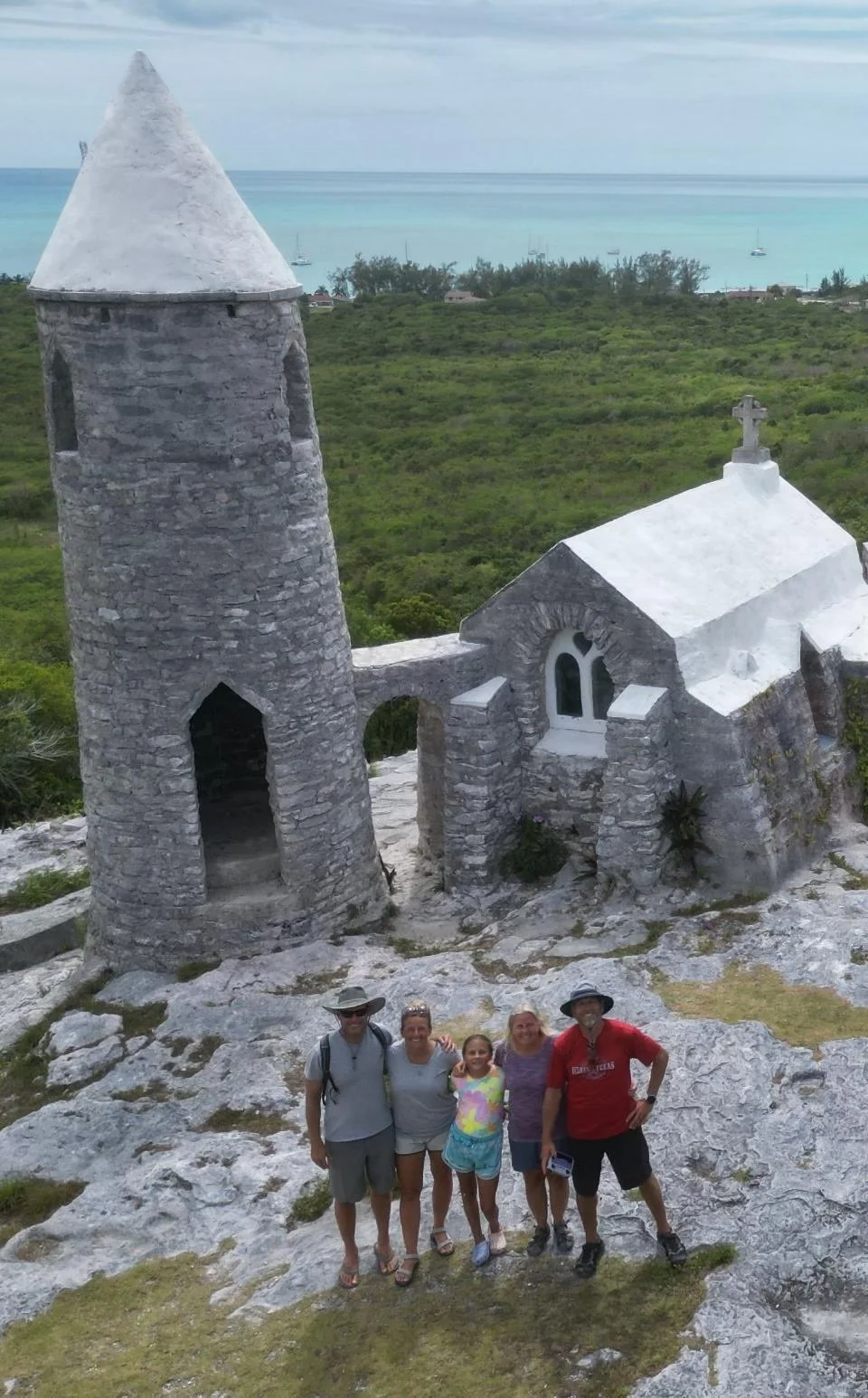 As beautiful as it was, we were ready to find a more comfortable spot. We made one short stop at a convenience store beside the church to grab whatever fresh provisions we could find before heading back to the boat. At the checkout, we mentioned that we were the sole boat in the anchorage. The three people behind the counter exchanged glances—looking at us, then at each other—before one woman said, "You are boaters? You don't look like boaters. Boating does something to you guys," waving her hands and making a wild expression. And she's not wrong. But thankfully, that day we were a little more presentable.