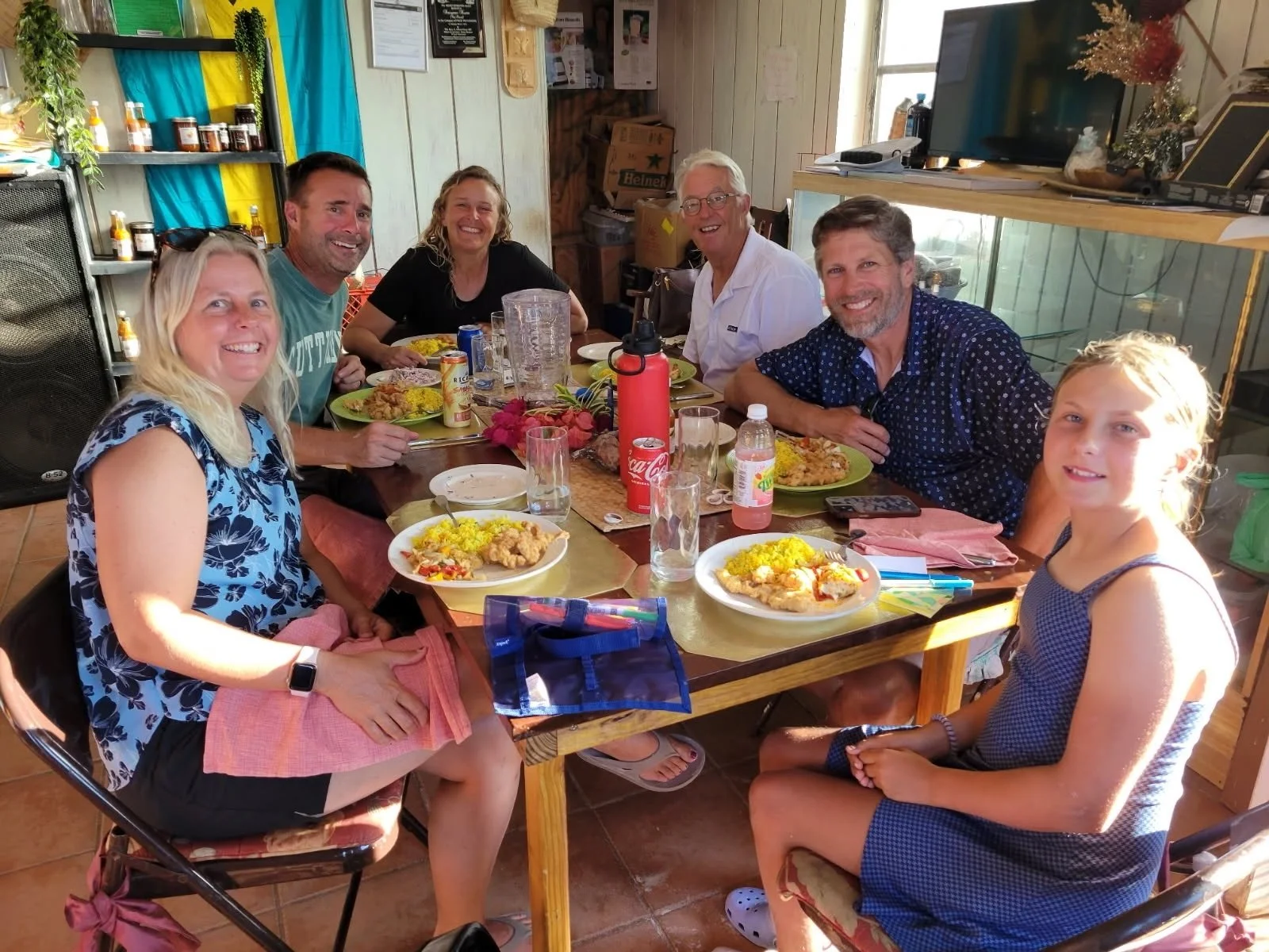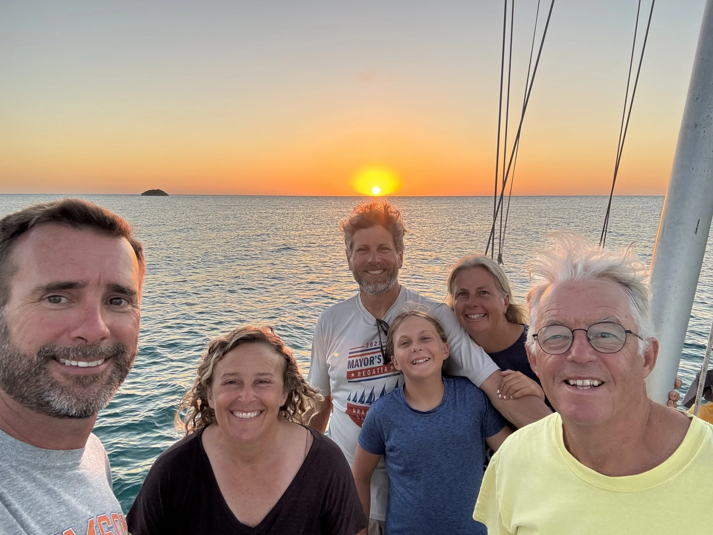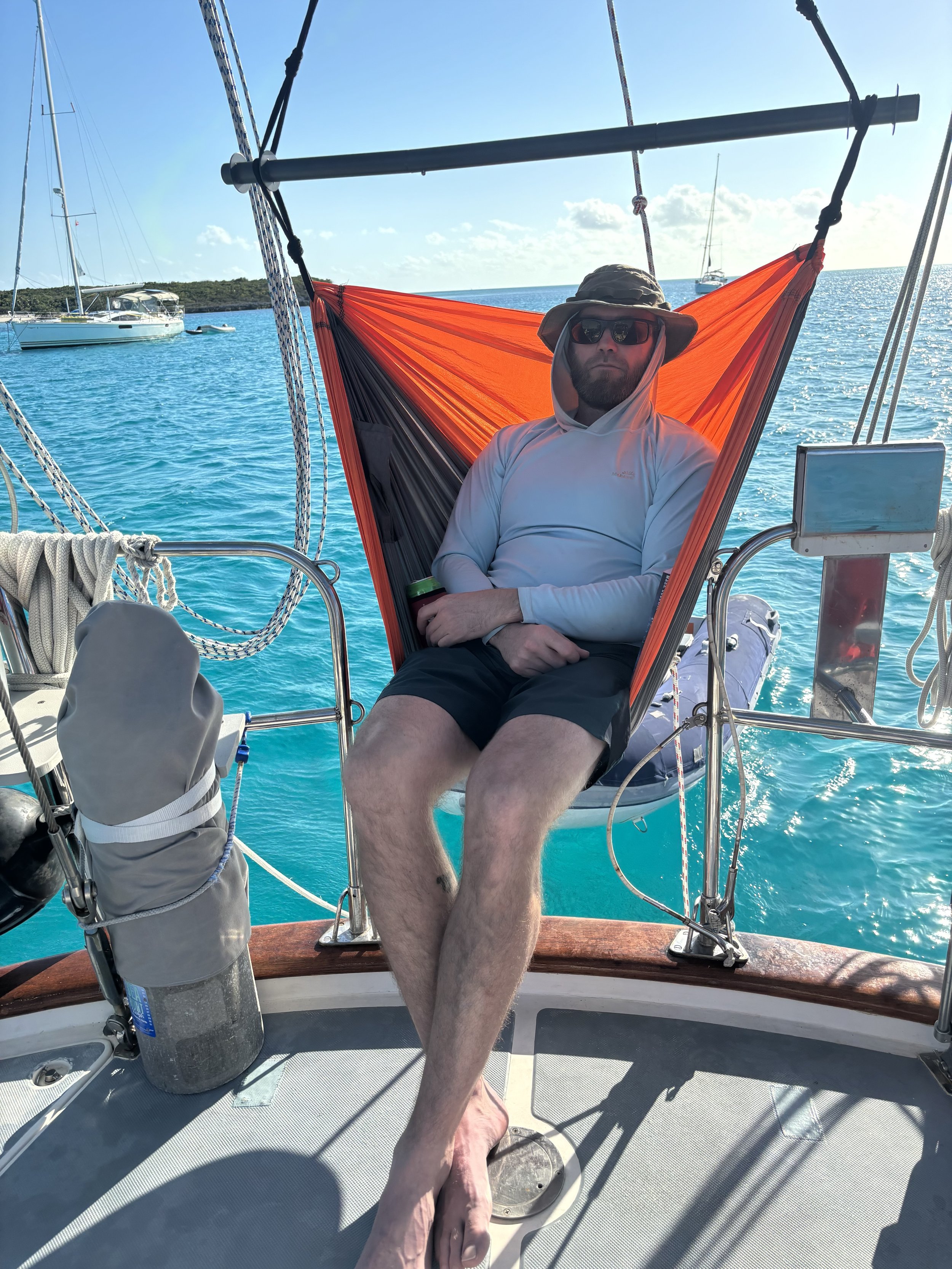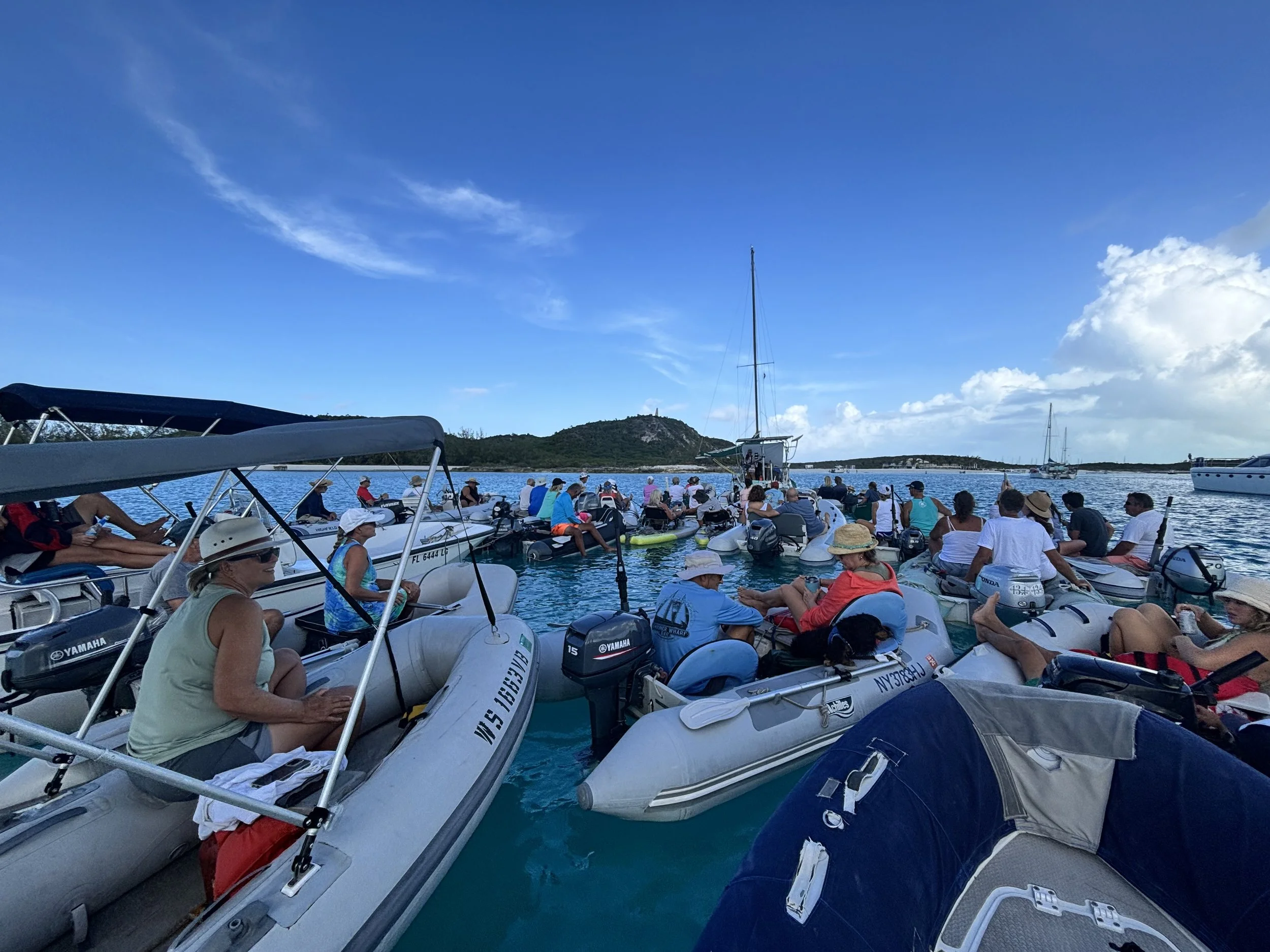 With the wind event behind us, we made our way to Staniel Cay, where Ken's brother Andrew and our niece Claire were joining us for ten days to celebrate her 16th birthday. One of my favorite things about this lifestyle is getting to share it with the people we love. We played games, watched movies, ate great meals, and took in amazing sights—including a ten-foot hammerhead shark that Ken and Andrew watched chase its dinner as they returned from a fishing expedition.