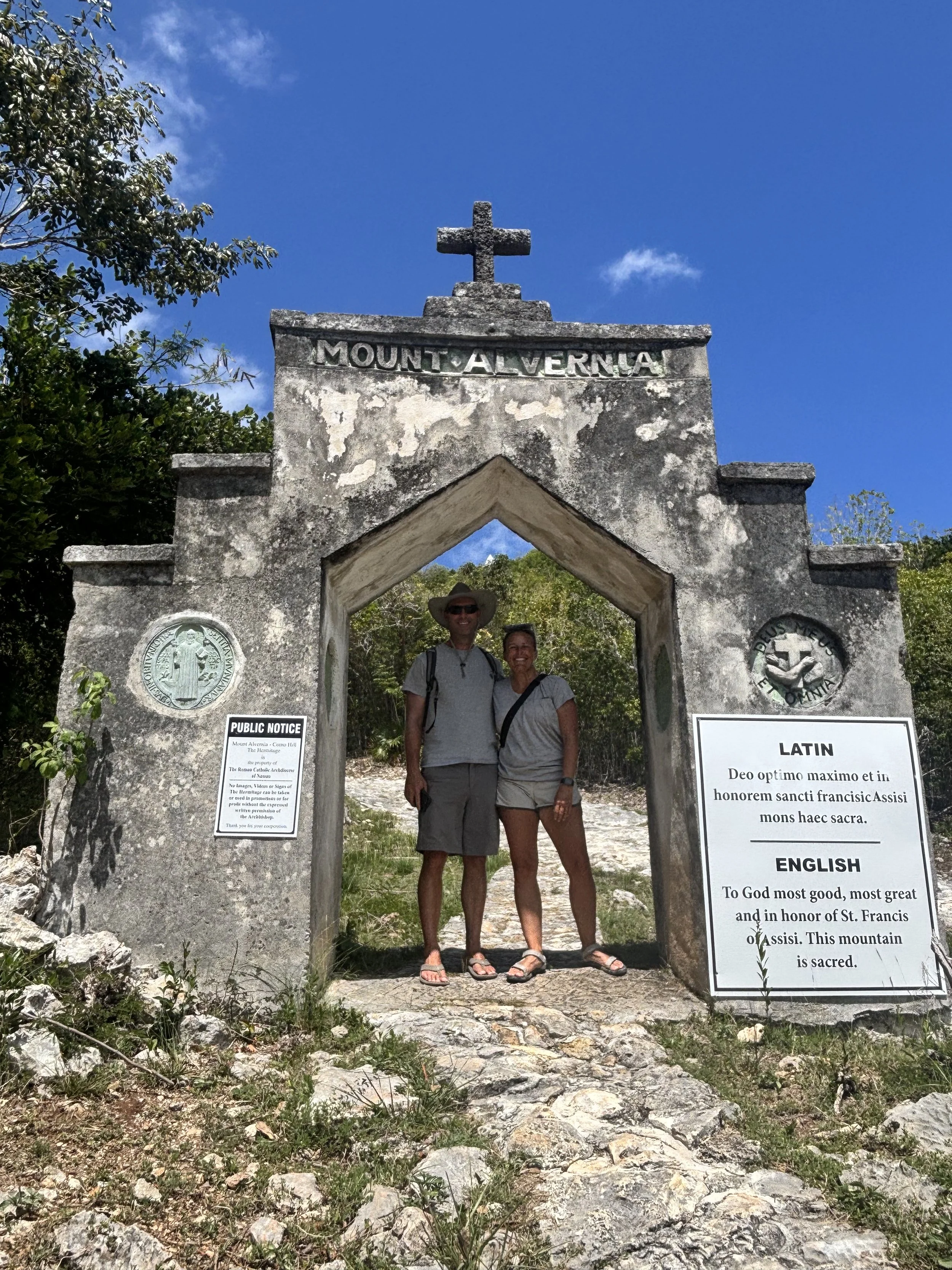 Hiking to the top of Mt. Alvernia on Cat Island.