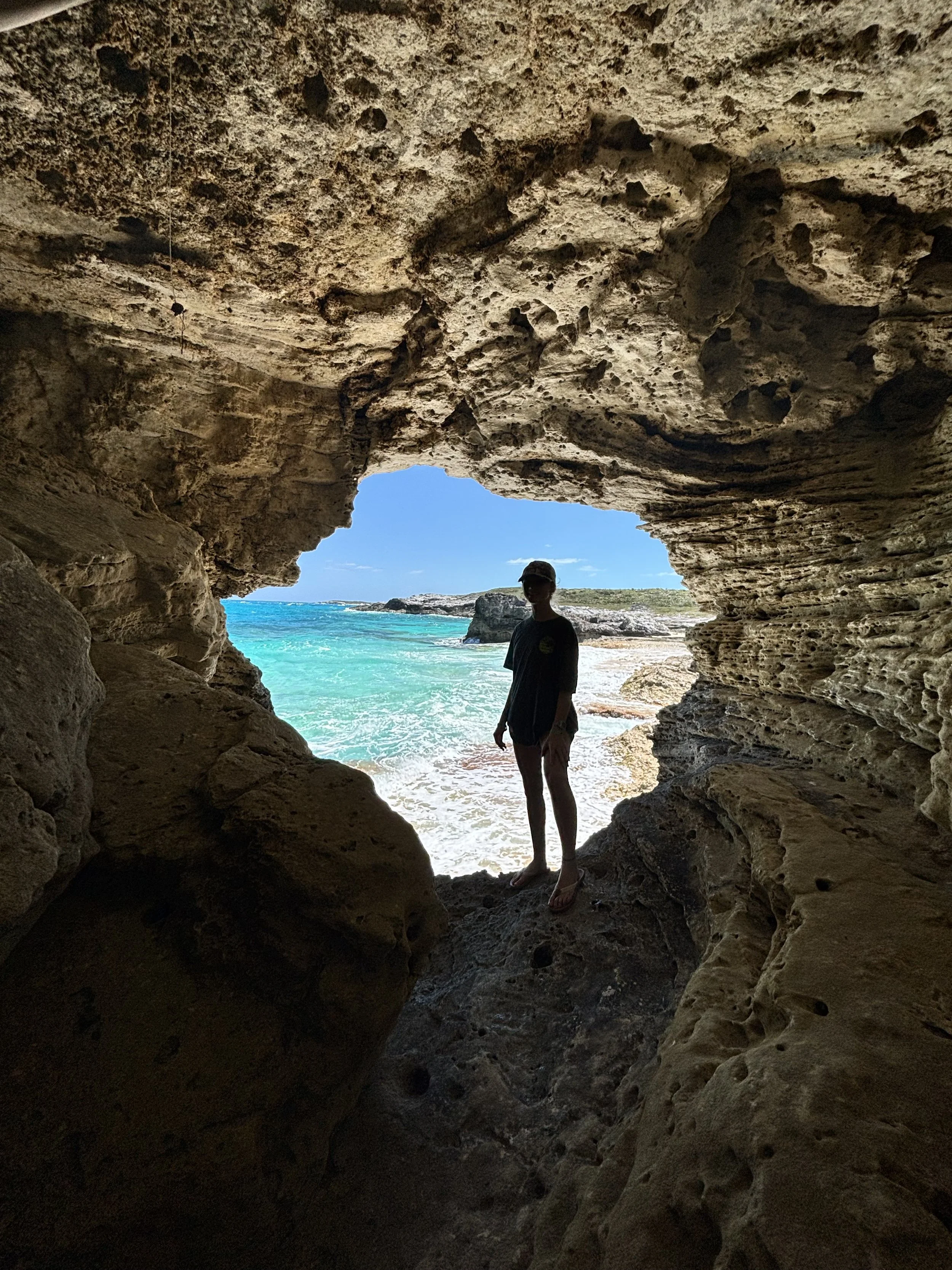 Claire exploring a cave in the Exumas.