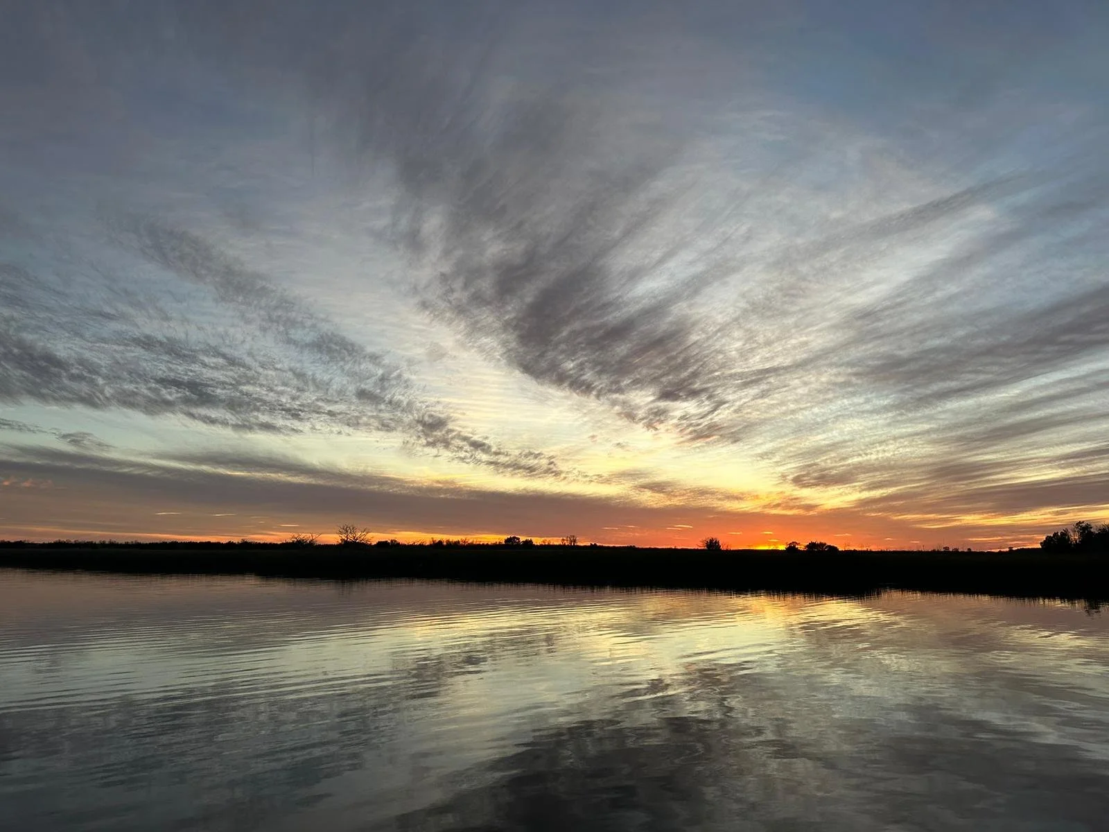 One evening, we sat on the bow watching the sunset when we noticed the water stirring just ahead of us. Suddenly, fish began flying through the air. We grabbed our binoculars—that's when we realized dolphins were flinging fish back and forth, right to left, left to right, for well over thirty minutes. It was a rousing game, for the dolphins at least, and we thoroughly enjoyed every minute of it.