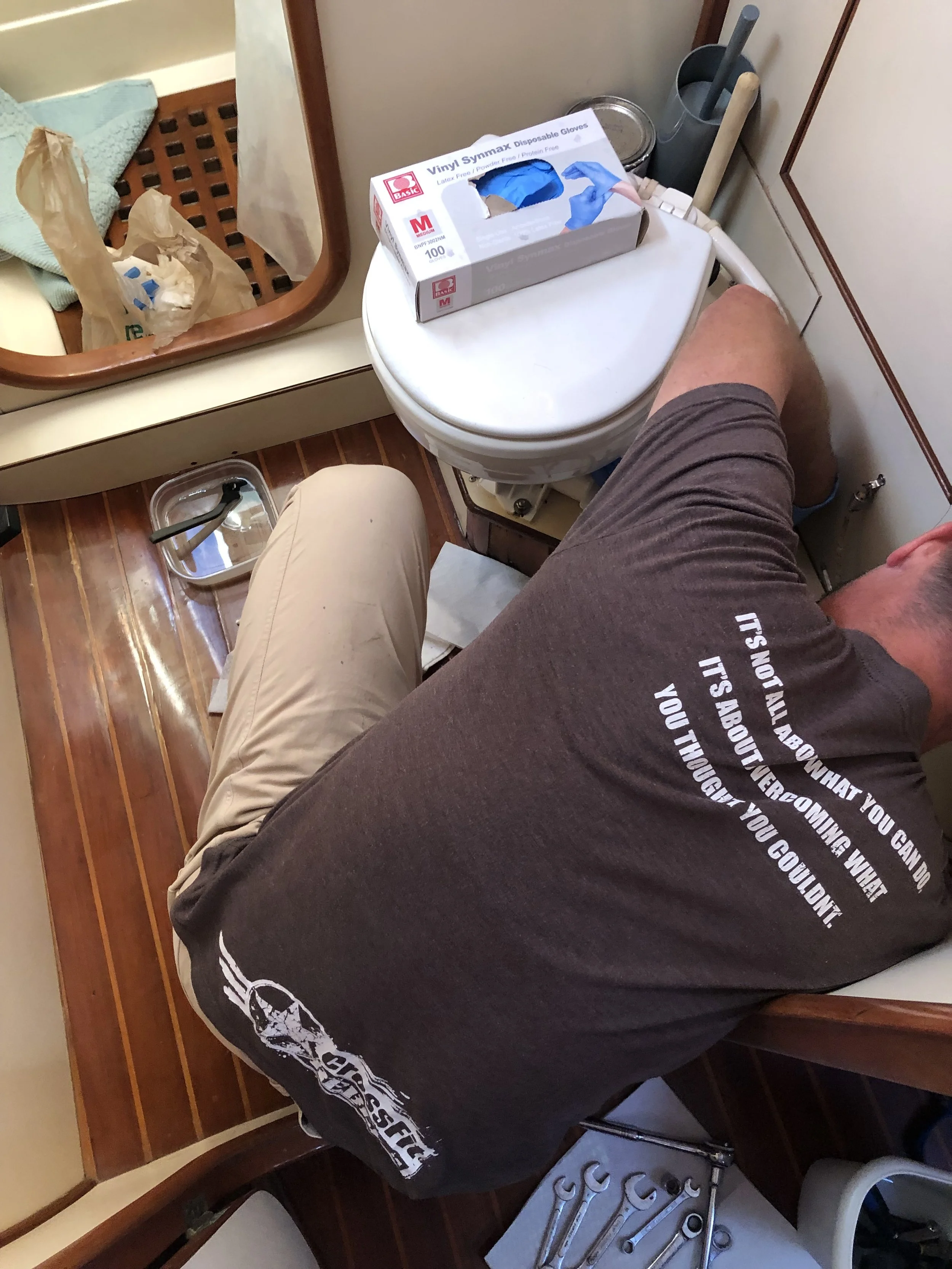 Another unforgettable moment came one night while we slept. I have always been fastidious about locking doors, so sleeping aboard a boat with hatches and windows open was, at first, a little unnerving. Having heard stories of thieves boarding boats in the night, I noticed every little sound. On this particular night, I heard a suspicious thump. I lay still, listening. Then I heard it again, and I knew without a doubt that someone or something was on our boat.