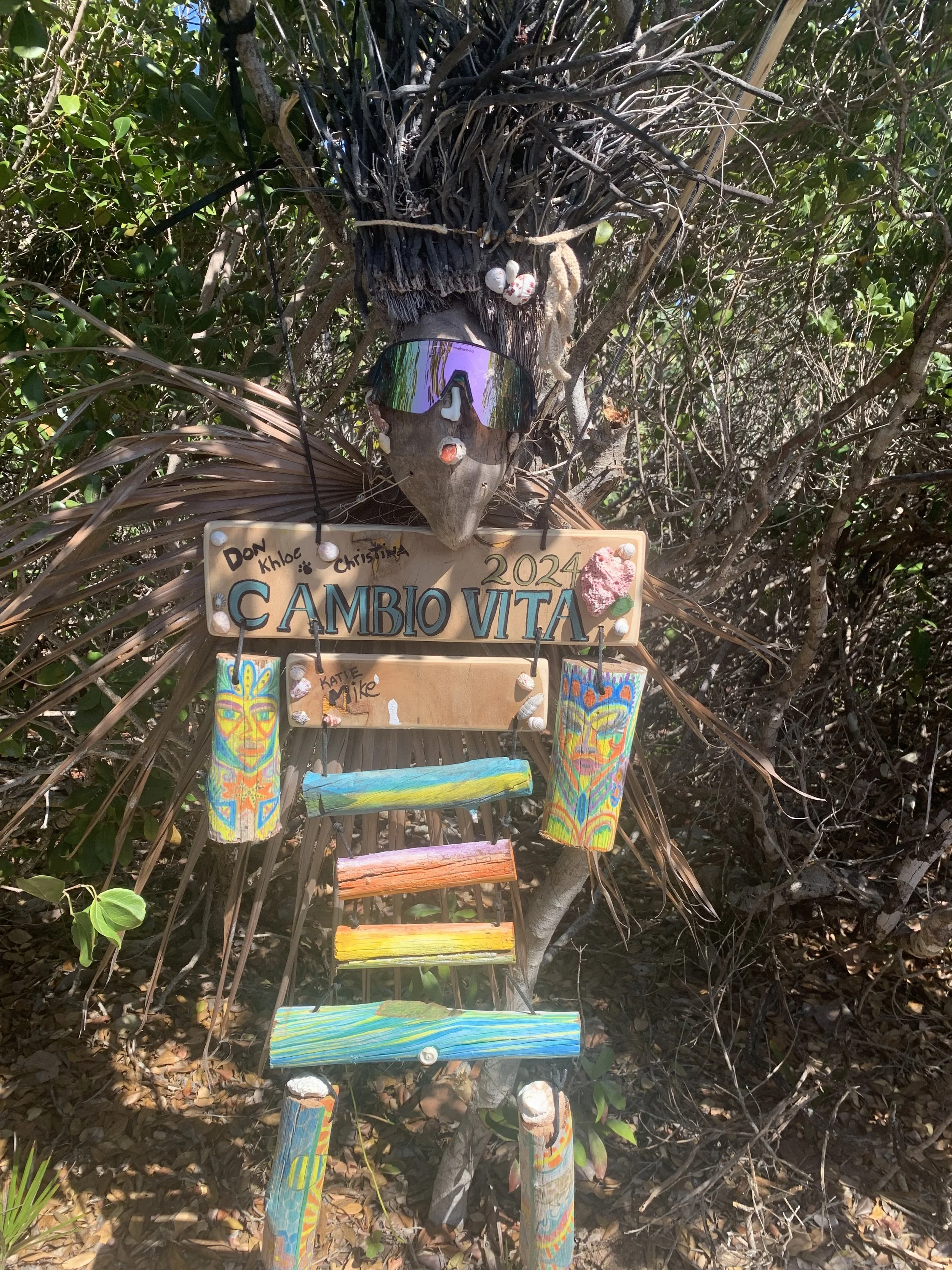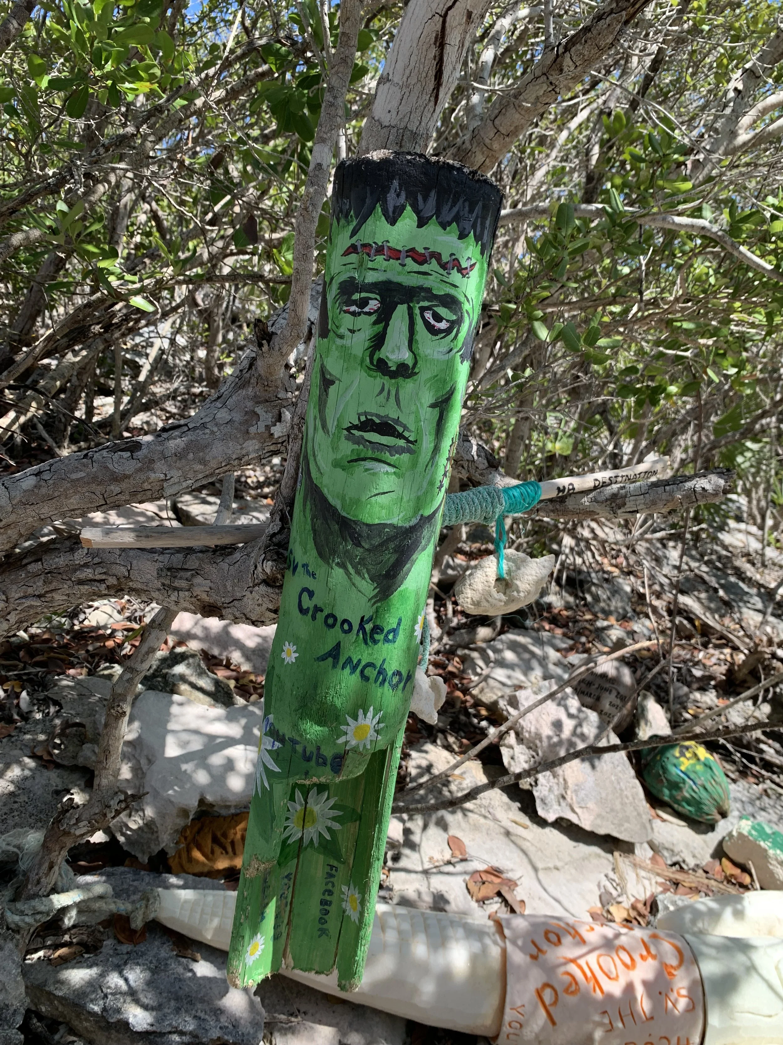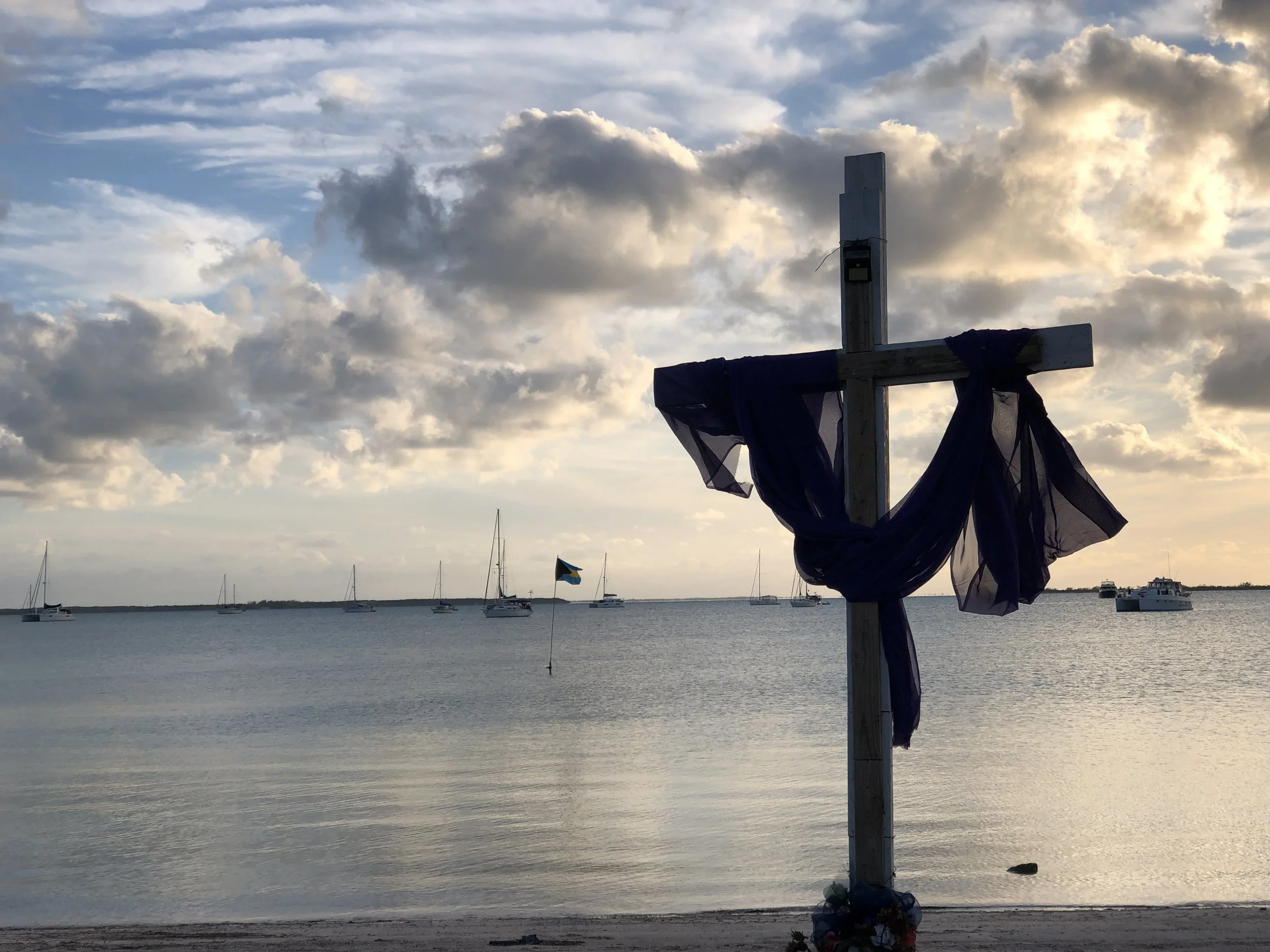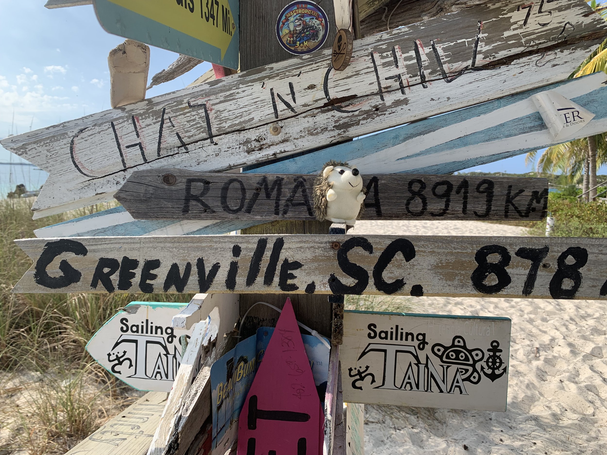 From Black Point, we moved on to Georgetown, the largest settlement in the Exumas, with a lively cruising community. We hiked Monument Hill and the Art Trail, and hung out at Chat n' Chill with other sailors. Ken also had to fly back for work while we were there. I stayed behind with the boat, but good friends from Dock 7 were anchored nearby, which made the time fly.