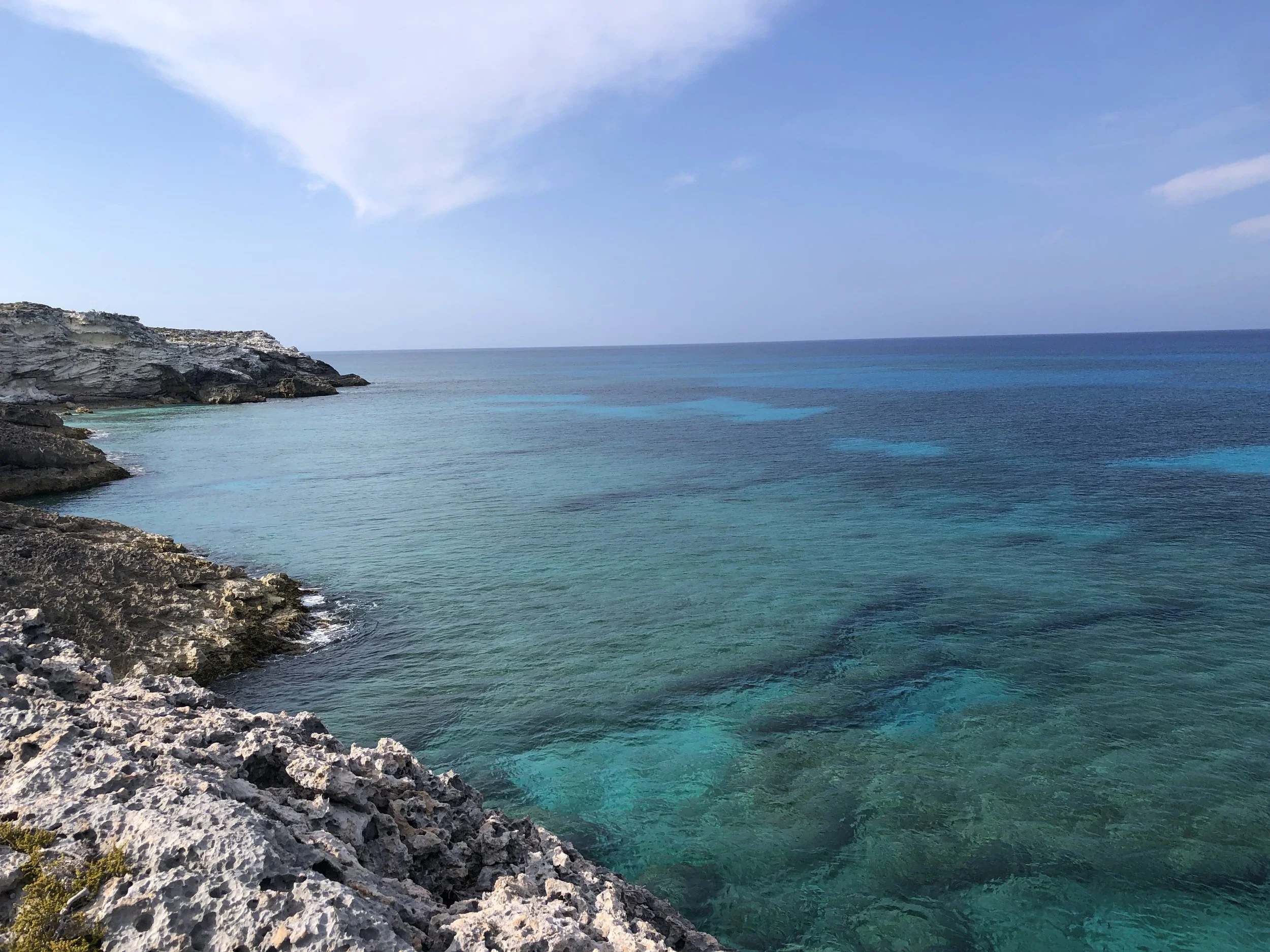 Eleuthera was just as beautiful, but more populated, and we were able to restock on fresh vegetables and other supplies. We explored Preachers Cave, Cathedral Cave, and a blue hole. We also spent a few days in Rock Sound, riding out a strong weather event with gusts up to 60 knots and whiteout rain.
