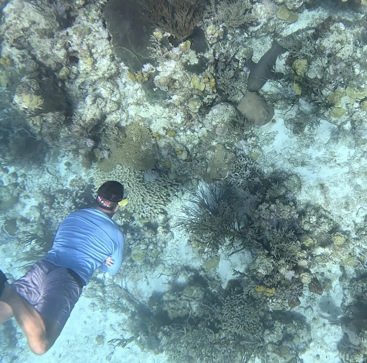 It was my first encounter with anything other than a nurse shark, which I'd grown relatively comfortable with. It was a magnificent creature, one to be respected. Though it frightened me, I didn't utterly panic—a huge accomplishment for me.